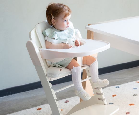 Adjustable to 2 heights, to use initially as a high chair (75 cm), which can be converted once baby is older into a kids’ chair for kids’ tables with a height of 50cm.